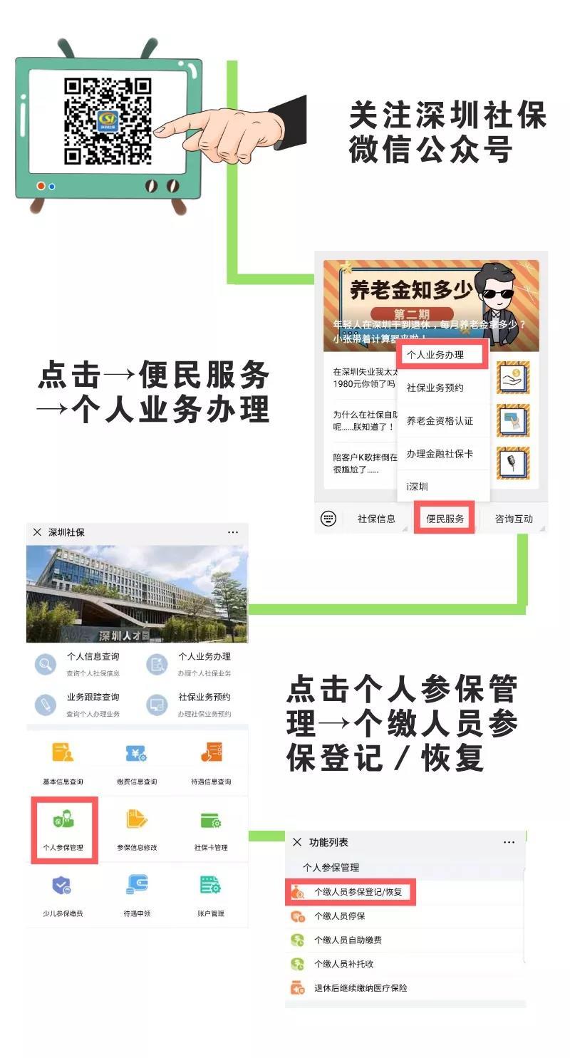 怎樣給自己參保繳費(fèi)?深戶(hù)靈活就業(yè)人員有以下幾種渠道為自己參保繳費(fèi):登錄深圳市社會(huì)保險(xiǎn)基金管理局官網(wǎng)(http://hrss.sz.gov.cn/szsi)上的個(gè)人網(wǎng)上服務(wù)系統(tǒng),自助辦理。關(guān)注“深圳社?!蔽⑿殴娞?hào),在微信上辦理。在社保自助終端機(jī)上辦理。前往社保機(jī)構(gòu)的辦事窗口辦理。