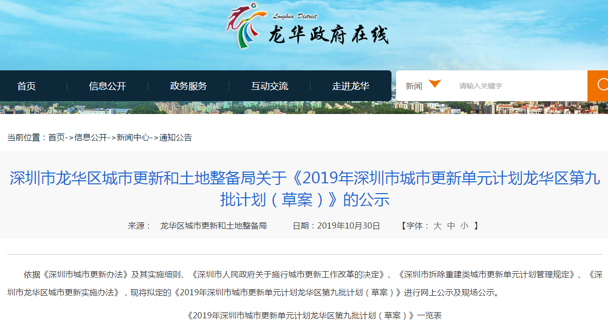見圳客戶端·深圳新聞網(wǎng)2019年11月5日訊 10月30日,龍華區(qū)城市更新和土地整備局發(fā)布了《2019年深圳市城市更新單元計劃龍華區(qū)第九批計劃(草案)》的公示,更新地點分別在龍華街道、大浪街道,其中,龍華街道將建21600平方米高中用地一處,不少于9班幼兒園一所;大浪街道要落實用地面積不少于9132平方米的義務(wù)教育用地一處。