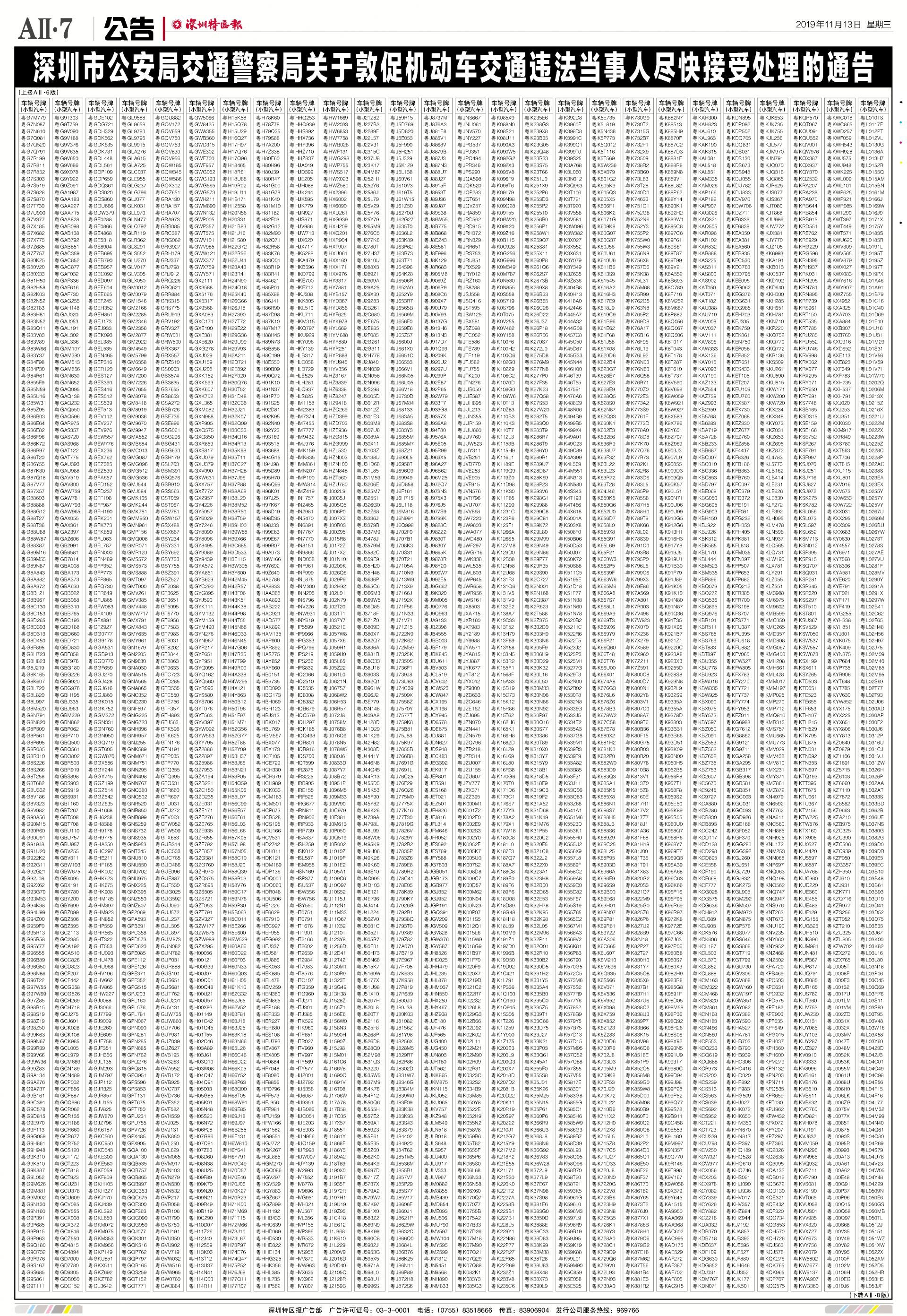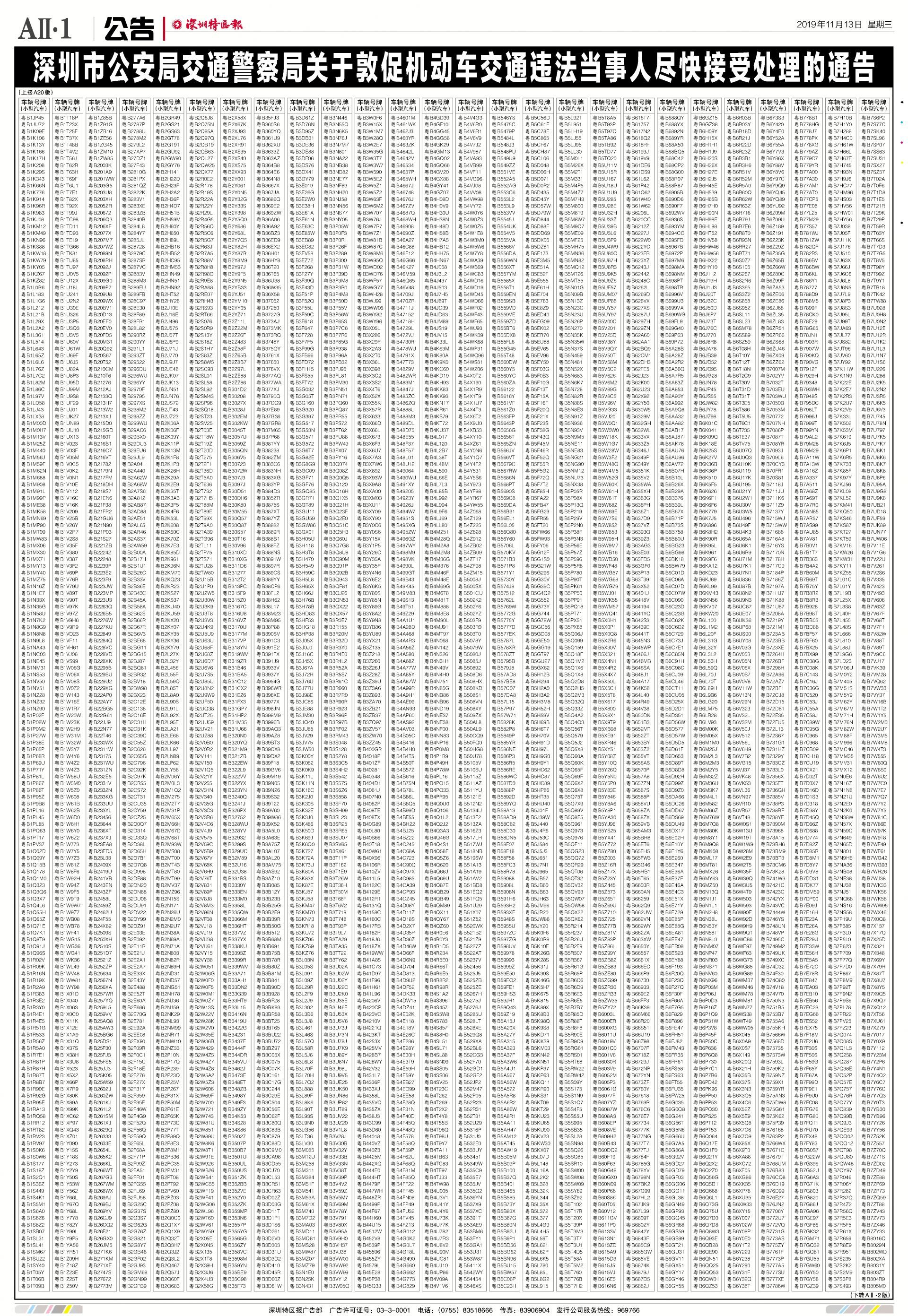 今年7月至10月初,全市機動車被“電子警察”抓拍交通違法行為1342781宗,深圳交警通過多種方式進行交通違法行為告知,但截止至目前仍有部分機動車的非現(xiàn)場交通違法未及時處理。
