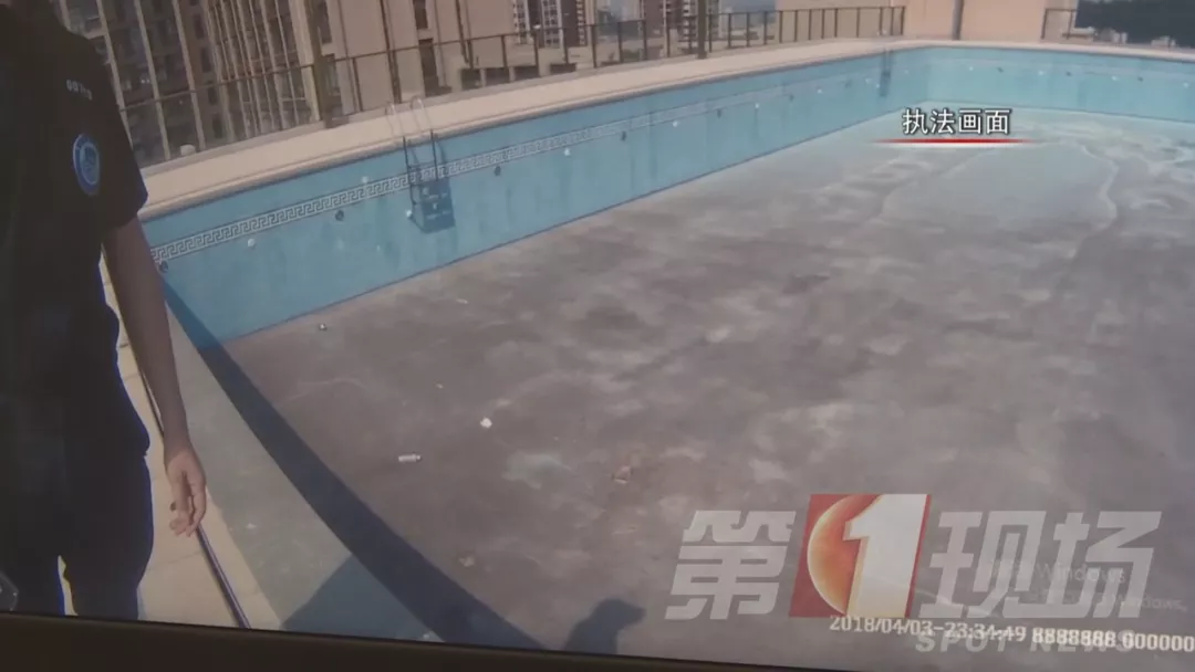 原本應(yīng)該是水泥平臺(tái)的樓頂,現(xiàn)在卻顯示為藍(lán)色花紋影像,發(fā)現(xiàn)這個(gè)情況后,坪山區(qū)規(guī)劃土地監(jiān)察局立即組織工作人員進(jìn)行核查。結(jié)果發(fā)現(xiàn),是在樓房經(jīng)過規(guī)劃驗(yàn)收后,開發(fā)商偷偷建設(shè)了一處游泳池。