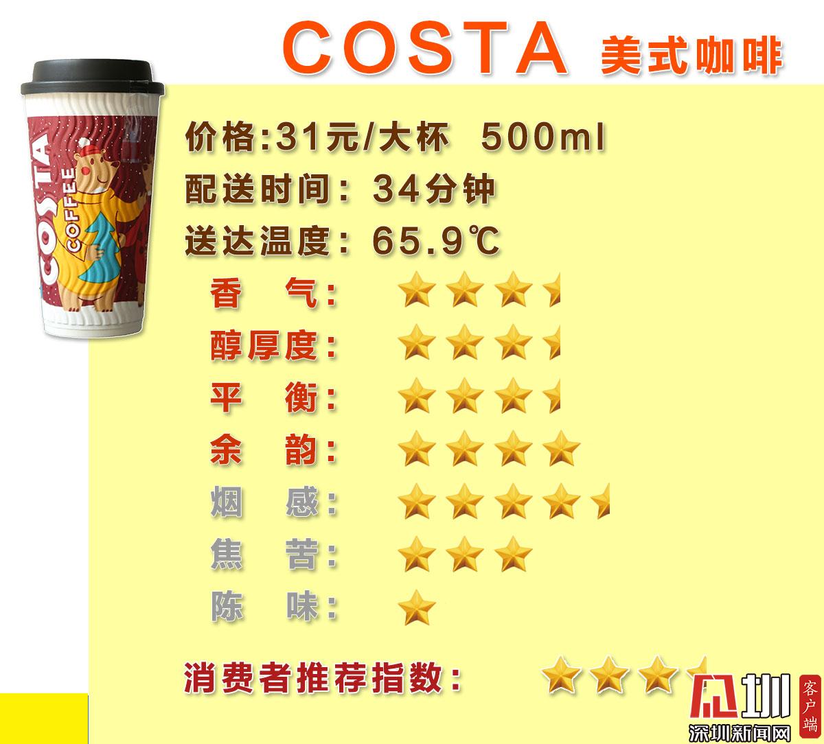 星巴克、瑞幸、太平洋星級(jí)較高,,Costa陳味較重僅獲三星半