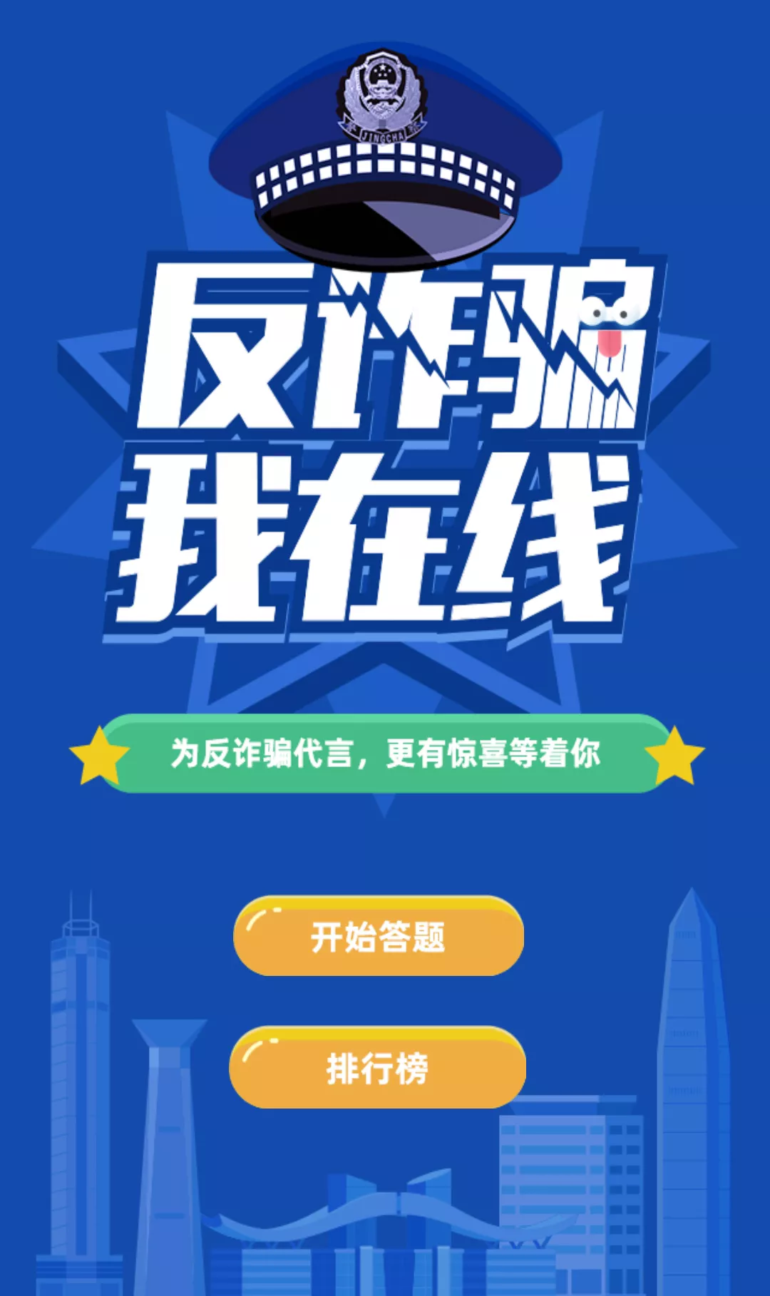 當(dāng)天“反詐騙我在線”線上答題活動(dòng)正式推出,掃一掃二維碼,關(guān)注“福田警察”微信公眾號(hào),即可參與答題,答對(duì)3題并分享反詐代言框到朋友圈,有機(jī)會(huì)獲得紅包獎(jiǎng)勵(lì)。