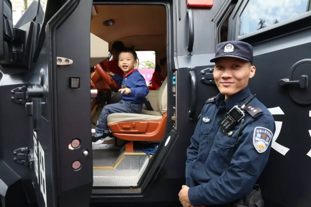 防暴頭盔、防爆盾牌、槍支警械、無(wú)人機(jī)、反恐車酷勁兒十足。大家興致勃勃地穿戴警用裝備,過(guò)一把警察癮,圓一回警察夢(mèng),做“圳”里最靚的仔!