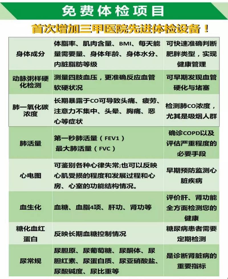 【免費體檢項目】