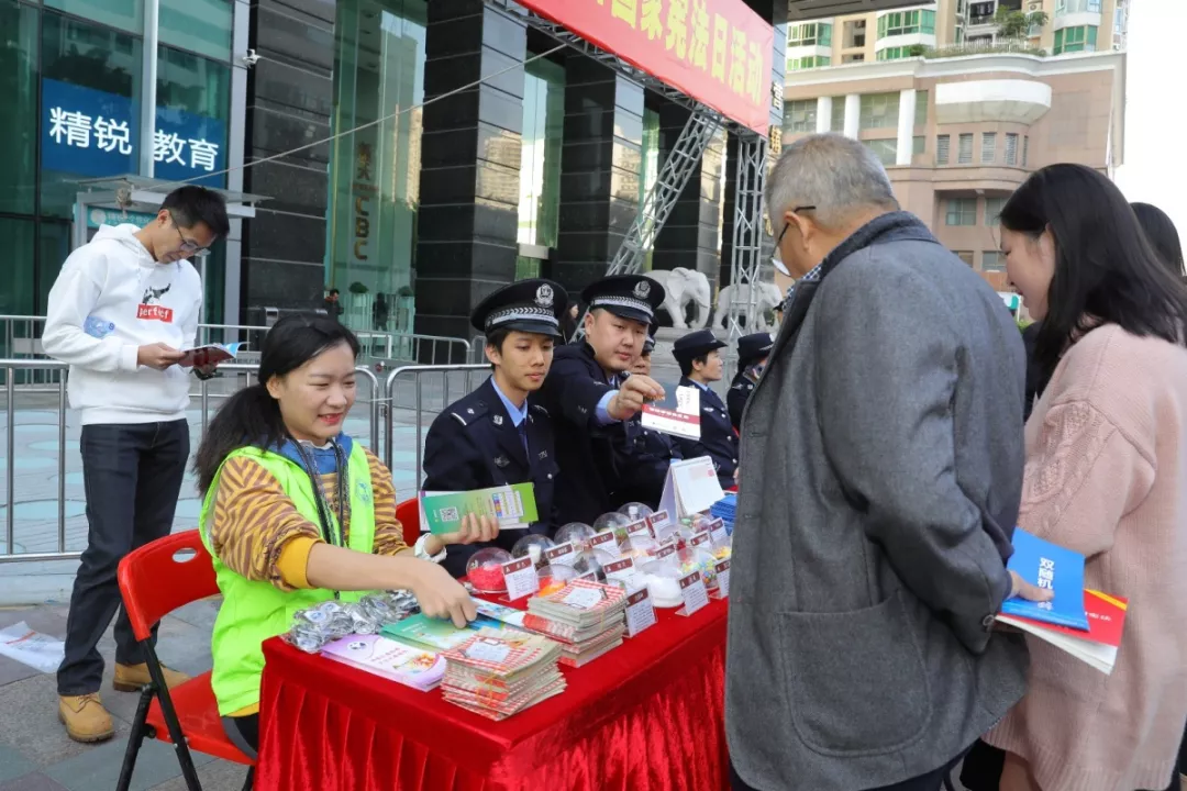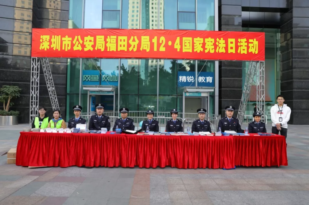 為全面貫徹落實習近平總書記全面依法治國新理念新思想新戰(zhàn)略,增強全社會憲法意識,弘揚憲法精神,深圳市公安局福田分局響應上級號召,于12月4日下午福田區(qū)馬成時代廣場開展了“12·4”國家憲法宣傳日活動。福田公安分局法制科牽頭組織人口科、治安科、刑警大隊、經(jīng)偵大隊、網(wǎng)警大隊、禁毒大隊、出入境管理大隊單位骨干民警參加此次活動。