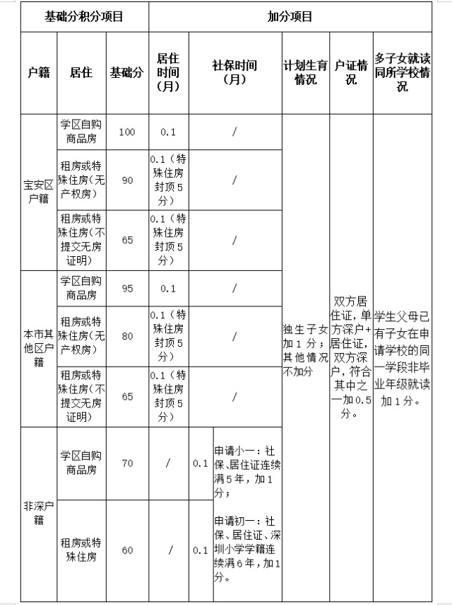 2020年寶安區(qū)義務(wù)教育階段學(xué)校積分入學(xué)辦法簡(jiǎn)表