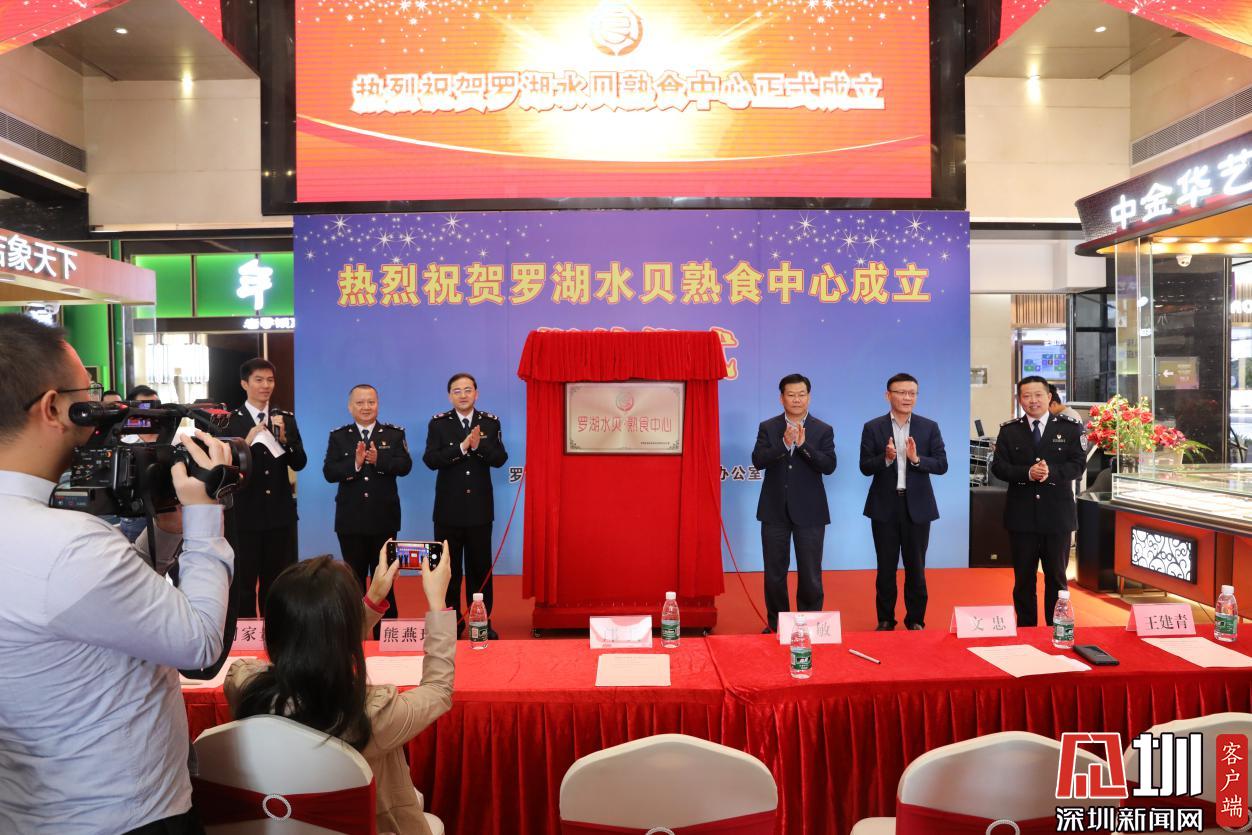 黃敏副市長、市市場監(jiān)管局局長鄺兵、羅湖區(qū)副區(qū)長文忠及深圳市市場監(jiān)管局、羅湖區(qū)政府有關(guān)負責同志為羅湖水貝熟食中心揭牌