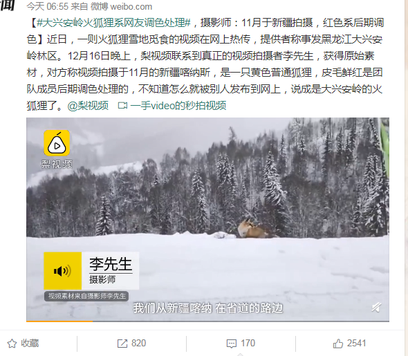 17日就被辟謠了,說是在新疆拍的一只普通黃狐貍