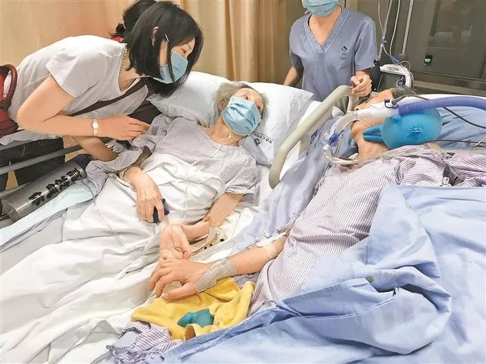 7月27日20點(diǎn)48分,香港大學(xué)深圳醫(yī)院的ICU病房里,兩位病重的老人的手握在了一起。在并排擺放的兩張病床上躺著的,是一對(duì)攜手恩愛(ài)57年的耄耋伉儷——高先生和彭女士。這兩位都已病重住院的老人,完成了或許是他們?nèi)松械淖詈笠幻?。這一幕,讓病床邊的許多親屬和醫(yī)務(wù)人員都淚流滿(mǎn)面。