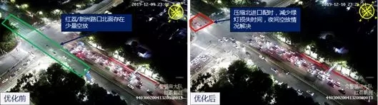 建設/解放路口夜間信號燈優(yōu)化前后對比