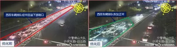 西鄉(xiāng)大道與前進二路口夜間信號燈優(yōu)化前后對比