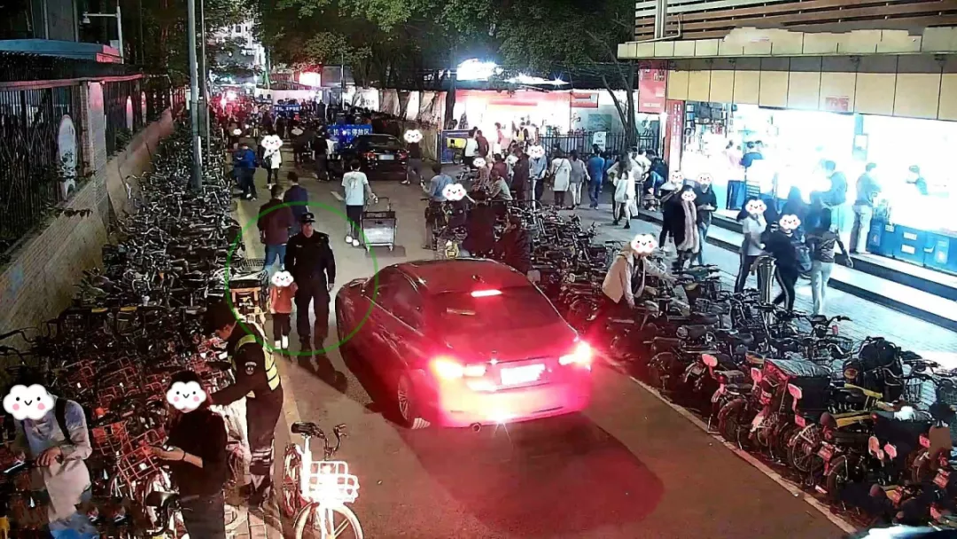 聽完男孩說的話,民警黃羽翹判斷男孩的父母可能就在這附近的市場(chǎng)上班,便帶著男孩進(jìn)入了附近的手機(jī)市場(chǎng)逐個(gè)樓層詢問,可惜接連走了幾個(gè)市場(chǎng),都沒有線索。期間黃羽翹詢問了值班室,但也沒有接報(bào)尋找走失小孩的警情。