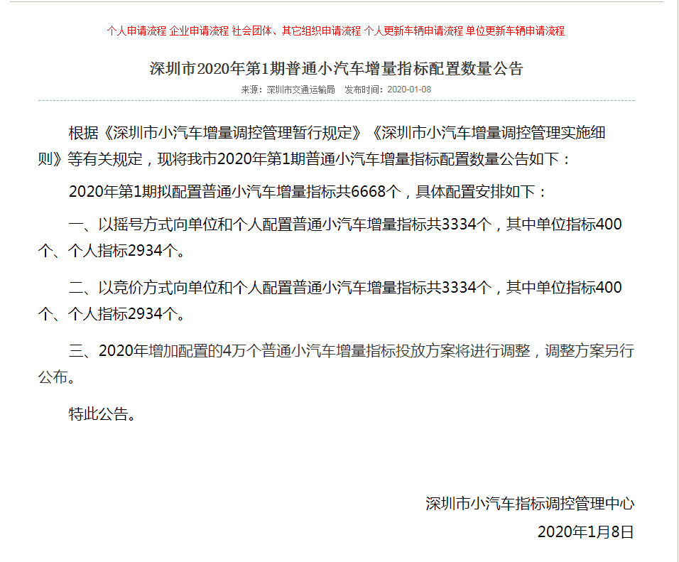 2020年深圳首期小汽車搖號(hào)競(jìng)價(jià)推遲一周,順延至節(jié)后第一個(gè)工作日1月31日。
