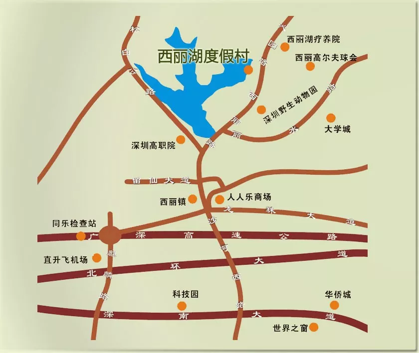 西麗湖度假村位于南山區(qū)西麗湖畔。擁有歌舞廳、高爾夫球場、釣魚中心、農(nóng)家樂等休閑設(shè)施,湖畔、村內(nèi)亭、廊、塔、寺各具特色。登上麒麟山,西麗湖美景盡收眼底。