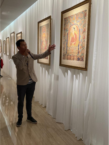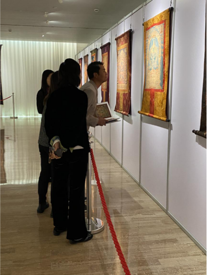 “本次展出的唐卡作品,整體質(zhì)量可以用‘精湛’這個詞來形容。展出的作品級別很高,工藝和藝術(shù)表現(xiàn)形式都特別好。”次仁占堆老師在見到展品后,興奮地說。