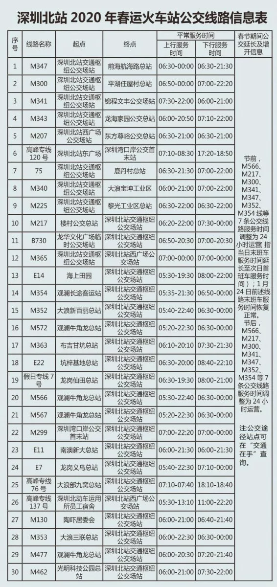 史上最全!深圳各大火車站途經(jīng)公交線運營時間都在這兒!