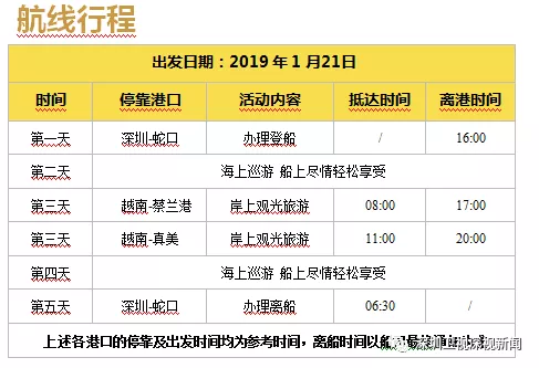 據(jù)悉,歌詩(shī)達(dá)威尼斯號(hào)郵輪1月21日16時(shí)從蛇口郵輪母港出發(fā),為6天5晚的航程,航行路線為:深圳-下龍灣(蔡蘭港)-峴港(真美)-深圳。
