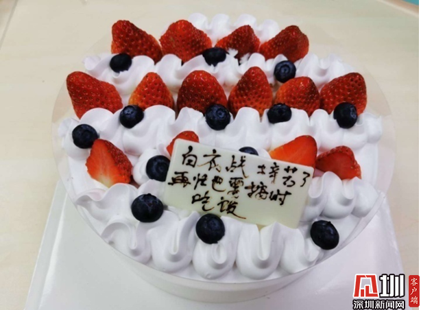 也有動情的時刻。有不知名的患者,看著我們忙碌辛勤、連飯顧不上吃一口、連水來不及喝一口,偷偷送上一份香甜蛋糕。蛋糕上寫著“白衣戰(zhàn)士辛苦了,再忙也要按時吃飯”,沒有留下一個名字。