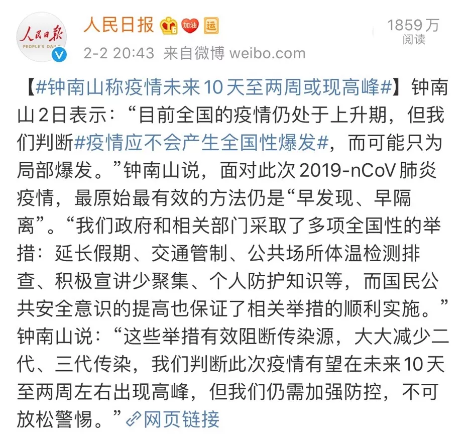 隨著近日“返深”的人越來越多,更多“難啃”的骨頭即將擺在我們面前。鐘南山在2日接受采訪時也表示,未來10天至2周,疫情或現(xiàn)高峰。