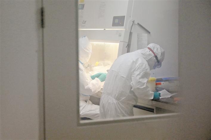 除了輪值實驗室,其余時間武偉華和同事照理都是按正常時間上下班,不過他們往往還會遇到突發(fā)情況。1月26日,一艘載有數(shù)百名湖北籍旅客的游輪抵達蛇口港。當(dāng)天早上7時,武偉華和同事就收到通知,要前往游輪對13例發(fā)熱和曾發(fā)熱人員進行集中采樣。"由于游輪體積巨大,人員分散,部分正在發(fā)熱人員須留在室內(nèi)觀察,我們光尋找采樣人員就走了3個多小時?;氐綄嶒炇液?我們立即進入實驗室檢測。當(dāng)最后一批結(jié)果出來時,已經(jīng)是下午5時了。"對武偉華和同事而言,在非常時期,像這樣的突發(fā)事件經(jīng)常面對,無論何時,心里的那根弦總是時刻緊繃。