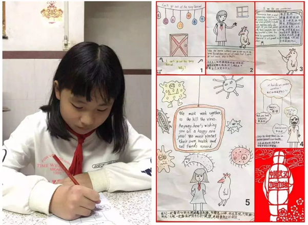 五(6)中隊的徐曼同學通過繪本讓更多的小朋友了解新型冠狀病毒感染的肺炎。