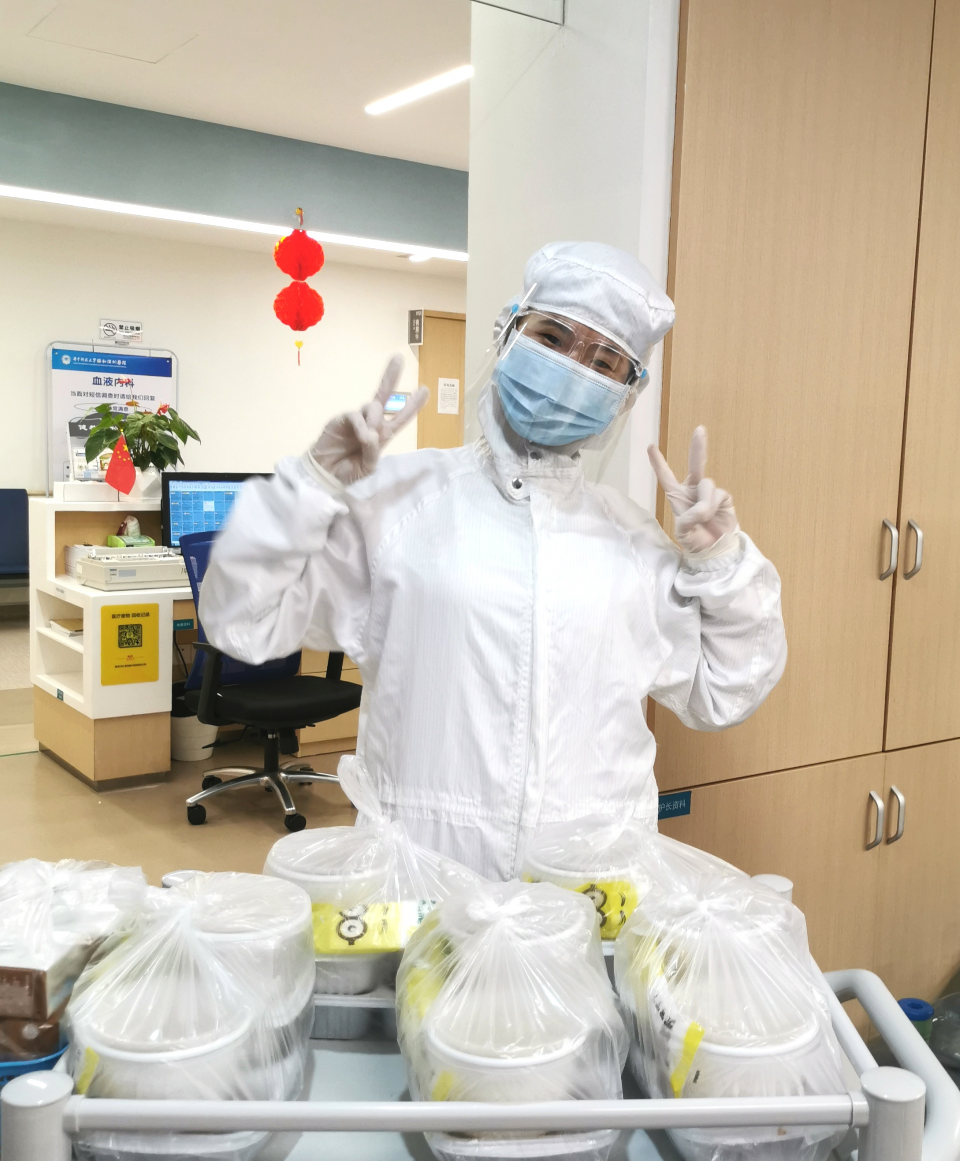 據(jù)了解,從1月中旬開始,協(xié)和深圳醫(yī)院很多堅守一線的醫(yī)護人員已經(jīng)一個月沒有休息了,他們?nèi)找箠^戰(zhàn),已經(jīng)忘了今夕是何夕,很久沒有與家人團聚了。一線醫(yī)護人員經(jīng)常要加班加點,為了讓他們不餓肚子,醫(yī)院膳食科也全力保障餐飲的供給。