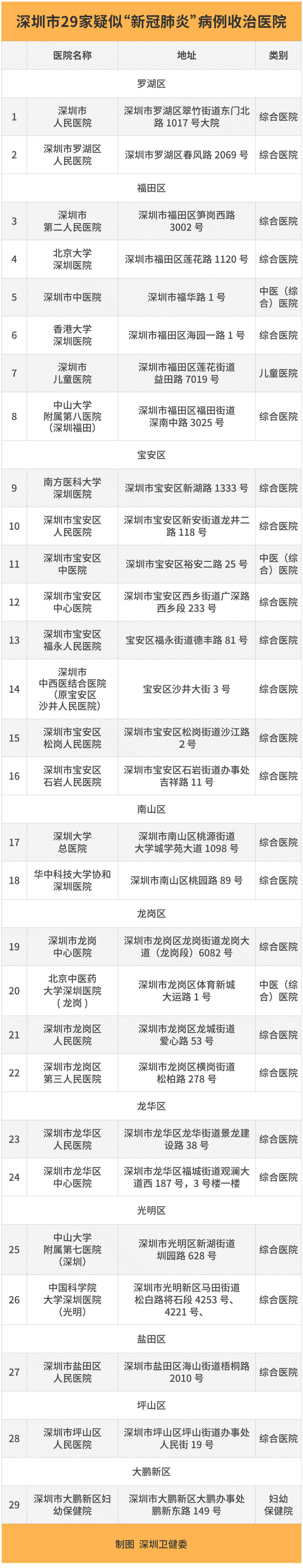 如果患者符合疑似病例條件,應(yīng)就地隔離。與此同時(shí),醫(yī)院會(huì)立即將患者情況上報(bào),并同步報(bào)告至所在區(qū)域收治醫(yī)院。目前,深圳已經(jīng)發(fā)布了29家疑似病例收治醫(yī)療機(jī)構(gòu)名單,市級(jí)收治醫(yī)院主要負(fù)責(zé)本院就診的疑似病例的集中收治,區(qū)級(jí)收治醫(yī)院主要負(fù)責(zé)本院就診及接收轄區(qū)區(qū)屬醫(yī)院、社會(huì)辦醫(yī)院和社區(qū)健康服務(wù)中心等基層醫(yī)療機(jī)構(gòu)轉(zhuǎn)診的疑似病例的集中排查和收治。