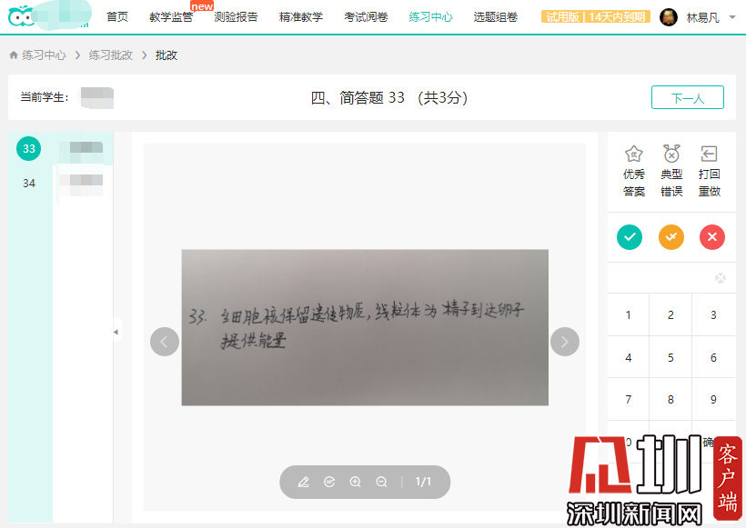 除了備課、上課外,如何及時(shí)完成布置作業(yè)、批改作業(yè)的工作也是線上授課的一個(gè)挑戰(zhàn)。深圳中學(xué)提前布局,配套了線上的智能教學(xué)系統(tǒng),讓同學(xué)們每天在線上完成作業(yè),從課后練習(xí)的角度保證了教學(xué)質(zhì)量。課后教師們通過學(xué)校的智能教學(xué)平臺(tái)批改同學(xué)們的作業(yè),并通過微信等方式回答學(xué)生的問題。