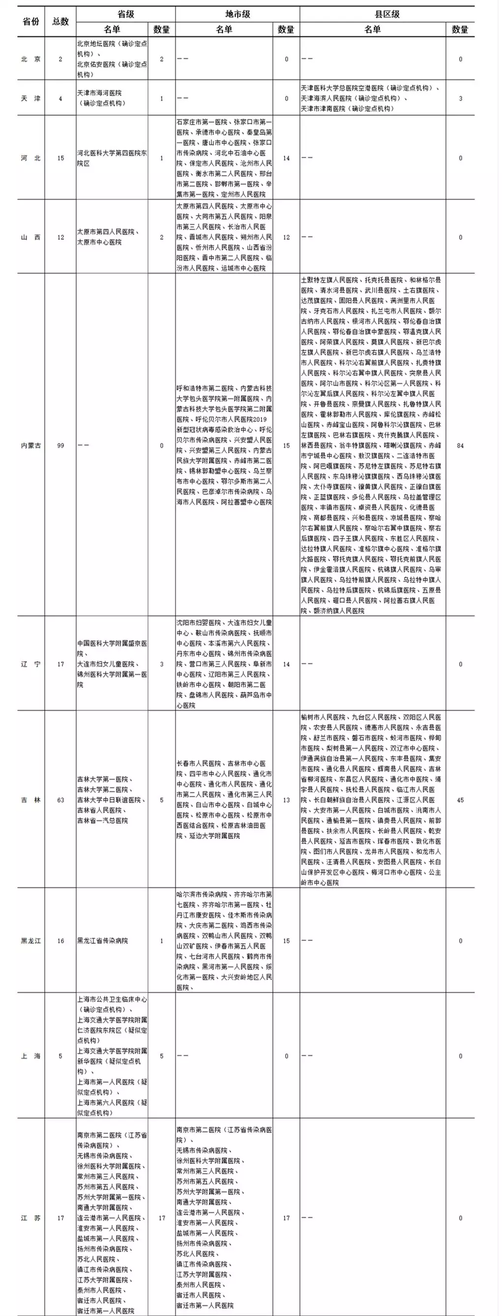 各省(區(qū)、市)新型冠狀病毒感染疑似或確診孕產(chǎn)婦產(chǎn)檢和住院分娩定點(diǎn)醫(yī)院(截至2020年2月11日)
