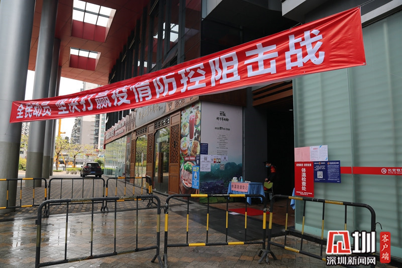 2月14日,龍崗天安數(shù)碼城內(nèi),一條關(guān)于疫情防控宣傳的橫幅懸掛在大廈進(jìn)出口。