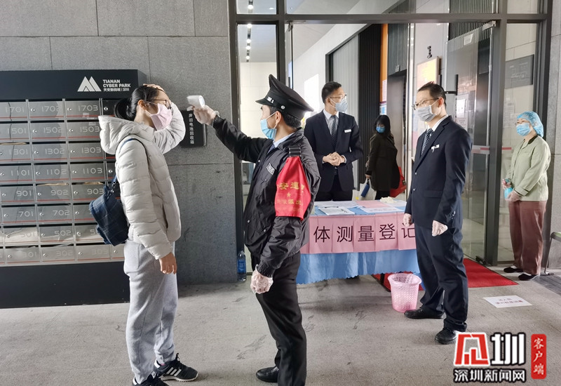 作為年產(chǎn)值達(dá)“百億”級(jí)、員工人數(shù)近兩萬(wàn)的龍崗重點(diǎn)園區(qū),龍崗天安數(shù)碼城的防疫工作如何做到“萬(wàn)無(wú)一失”?梁義榮介紹,目前除了個(gè)別滯留在外地的員工,園區(qū)200多人全員上崗,在各個(gè)出入口進(jìn)行人員管控、溫度測(cè)量、現(xiàn)場(chǎng)消殺、海報(bào)張貼,每天與各個(gè)企業(yè)溝通,協(xié)助企業(yè)辦理復(fù)工申請(qǐng)等等各項(xiàng)手續(xù),“我們從做好各項(xiàng)管控措施,盡全力守好‘第一線防護(hù)’,確保在安全的前提下,協(xié)助企業(yè)復(fù)工復(fù)產(chǎn)。”
