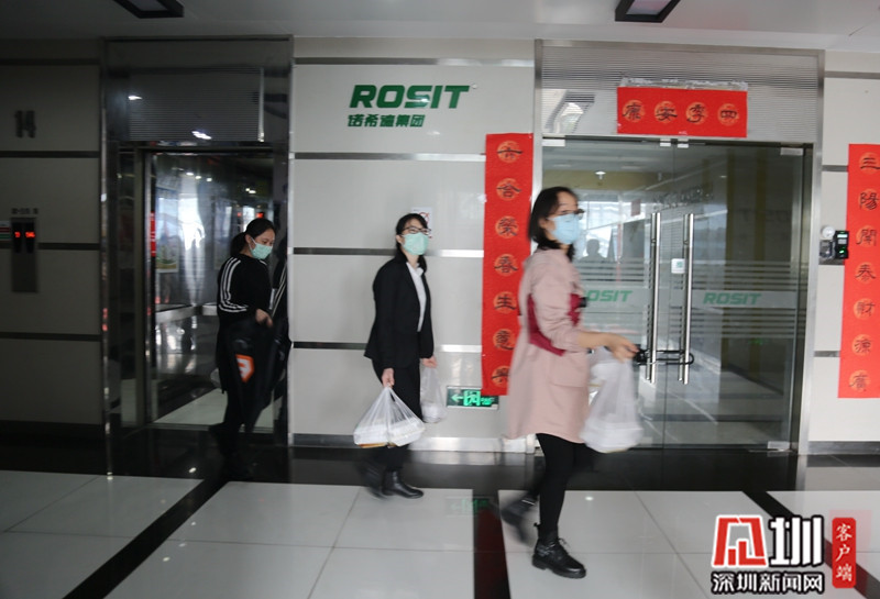 進(jìn)大門(mén),登記信息、測(cè)體溫,才放通行,出門(mén)還要再測(cè)體溫;電梯間備有專(zhuān)門(mén)的抽紙,電梯外按鈕由保鮮膜隔開(kāi);大部分通道和出入口已經(jīng)封閉,大門(mén)上張貼著關(guān)于疫情的提示;疫情防控知識(shí)的海報(bào)隨處可見(jiàn);鮮紅的防疫宣傳條幅十分打眼;進(jìn)出人人佩戴口罩;園區(qū)內(nèi)的龍崗區(qū)熟食中心大門(mén)緊閉;中午時(shí)分不少企業(yè)員工提著打包的食物回公司;不時(shí)有雙手拎滿(mǎn)外賣(mài)、帶著口罩和防護(hù)帽的送餐人員在園區(qū)內(nèi)快步行走……這些都是2月14日上午記者在龍崗天安數(shù)碼城看到的直觀印象。