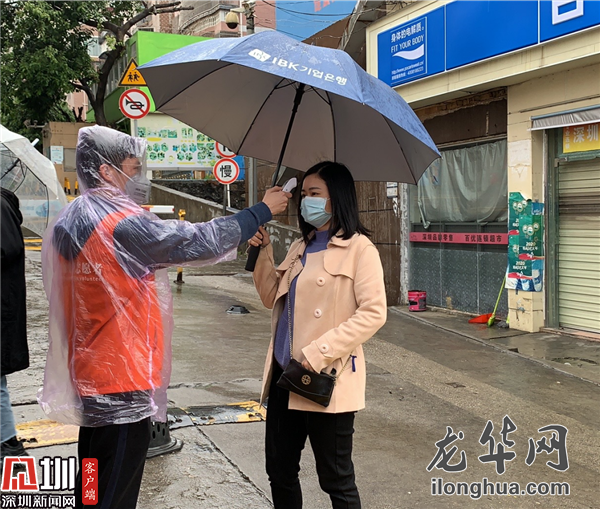 2月14日上午,當(dāng)記者在大浪街道龍勝社區(qū)黨員先鋒崗見到何耀良和孫杰時(shí),他們身上的衣服還在隱約冒著濕氣。原來為了避免下雨時(shí)市民排隊(duì)檢查出入證淋濕了身子,他們冒雨在各測(cè)溫點(diǎn)加搭帳篷,顧不上給自己防雨,一會(huì)兒便全身濕透了?!坝赀@么大,帳篷必須要盡快搭好,那時(shí)候滿心想著都是怎么才能更快一點(diǎn),根本顧不上躲雨啦!”孫杰爽朗一笑道。