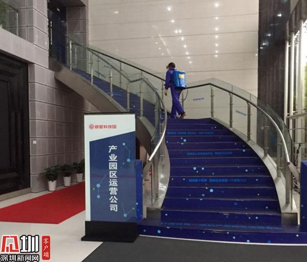 工作人員正在對(duì)園區(qū)進(jìn)行全面消殺。