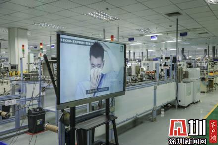 車間的一臺電視機(jī)正在播放“如何正確佩戴口罩”
