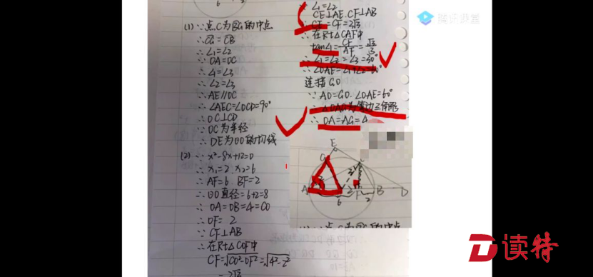 紅嶺中學(xué)初三生王龍在騰訊課堂的作業(yè)截圖。
