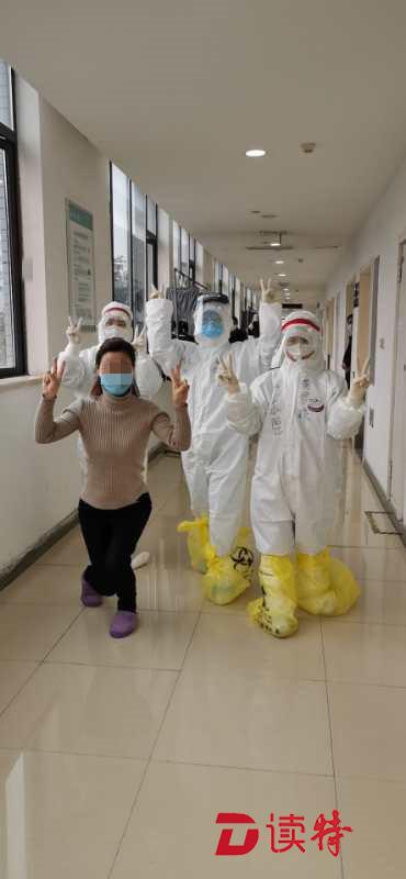 深圳醫(yī)療隊(duì)員與患者合影,互相鼓勵(lì)。
