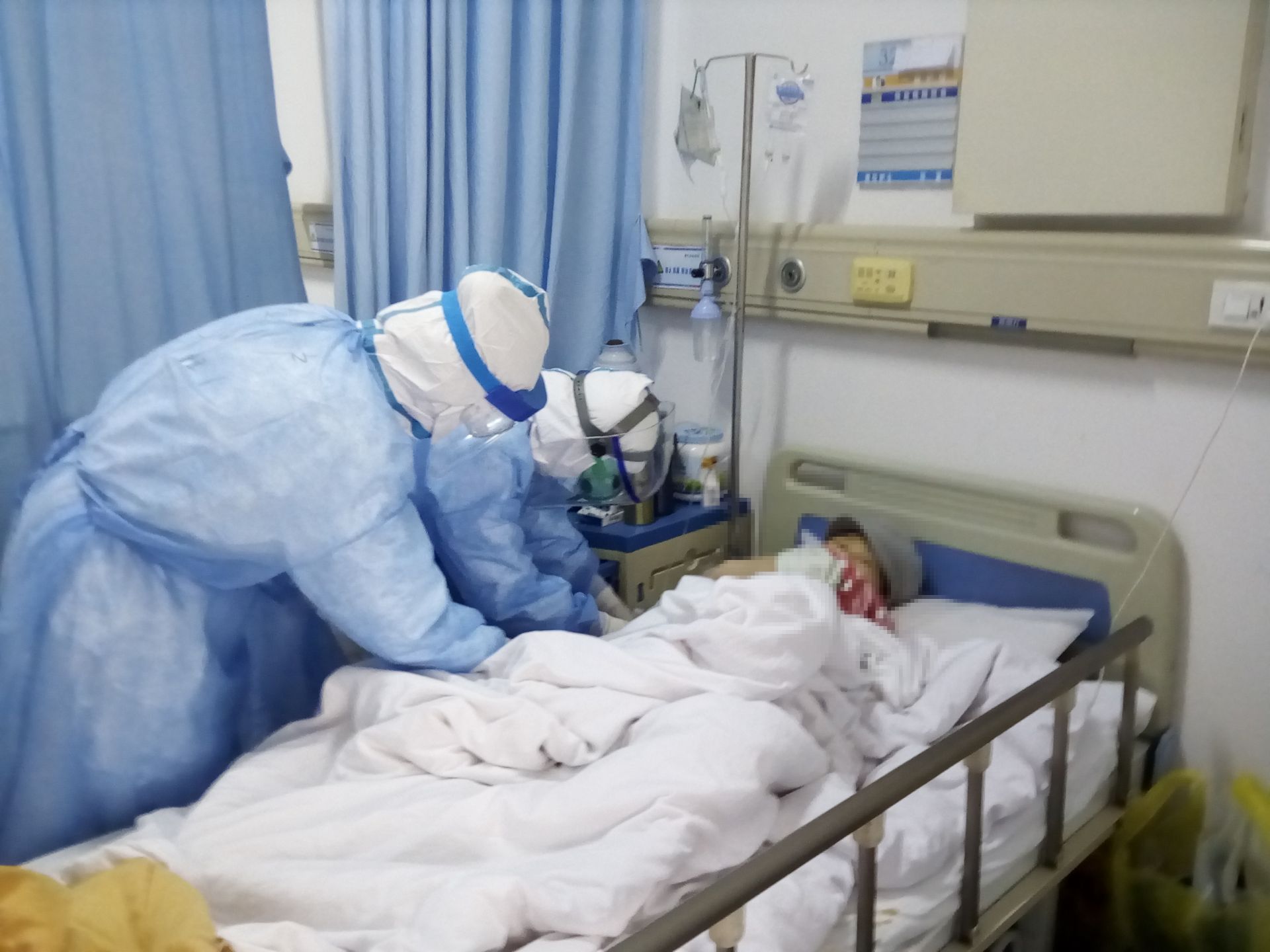 醫(yī)療隊隊員在重癥病區(qū)護理患者。