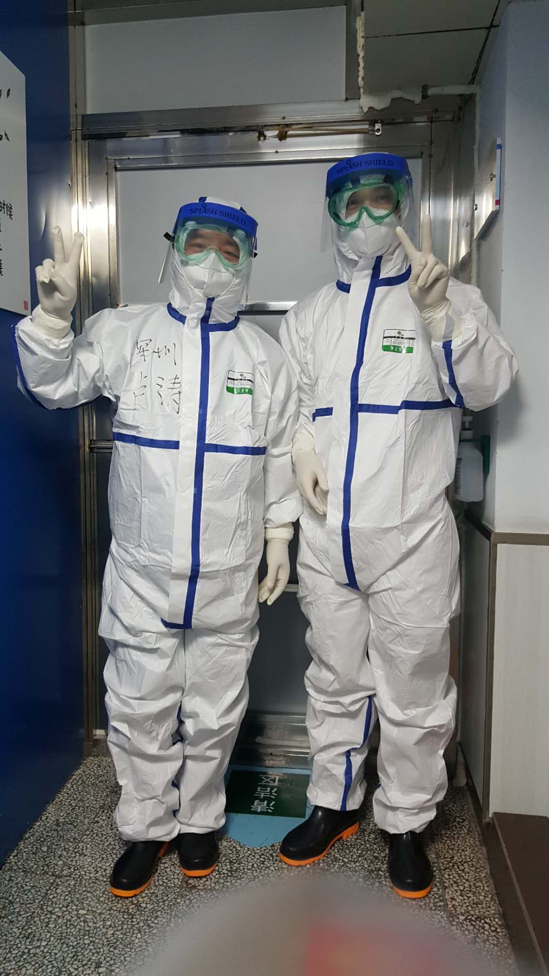 剛開(kāi)始,我小心地保持著與患者的距離,一個(gè)、兩個(gè)、三個(gè)……隨著接觸的患者增加,我慢慢也放松了,開(kāi)始進(jìn)入狀態(tài)。在病房?jī)?nèi),我詢問(wèn)病人情況,解釋病情,提醒住院醫(yī)師做好查房記錄,探討用藥情況,傳達(dá)鐘南山院士的最新診療方案、第六版治療指南……終于找到支援隊(duì)專(zhuān)家的感覺(jué)了。憋氣、悶熱,似乎都來(lái)不及體會(huì),突然后背一涼,怎么有水滴下來(lái)了?難道是防護(hù)衣破了?心頭一緊,再仔細(xì)感覺(jué),原來(lái)是汗水在里面流淌,虛驚一場(chǎng)。