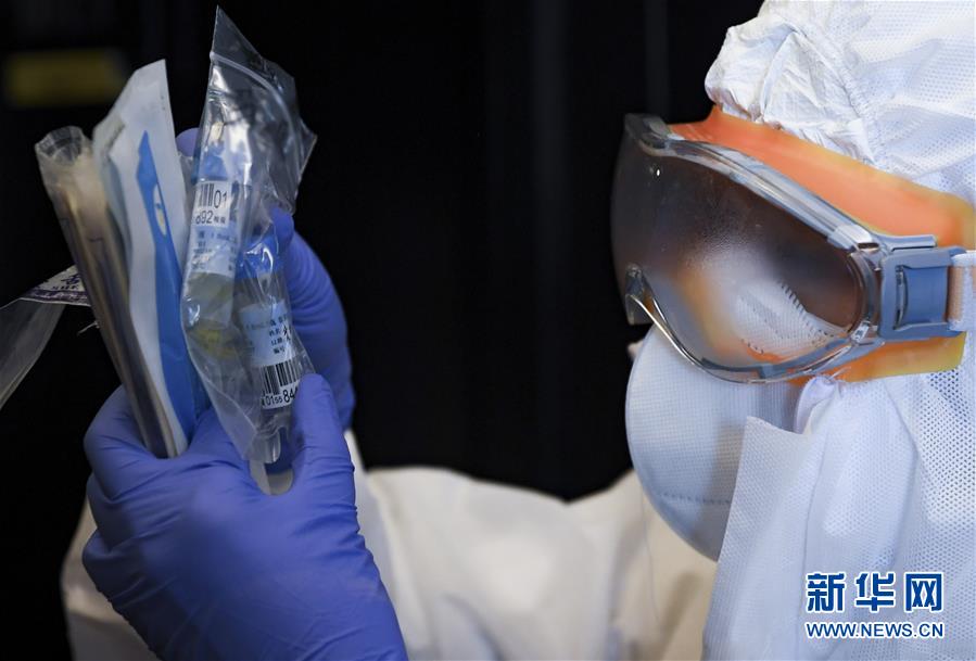 2月27日,在深圳龍崗的一家“健康驛站”,護士鐘笑瑜核對咽拭子采集人員的身份信息。 新華社記者 毛思倩 攝