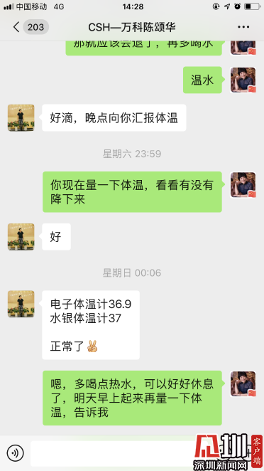 ·西麗社康醫(yī)務(wù)人員協(xié)同物業(yè)管理處,建立居家隔離的溝通微信群,住戶每天上報體溫,如有異常,安排社康工作人員上門排查,聯(lián)絡(luò)工作站人員聯(lián)系120轉(zhuǎn)診。