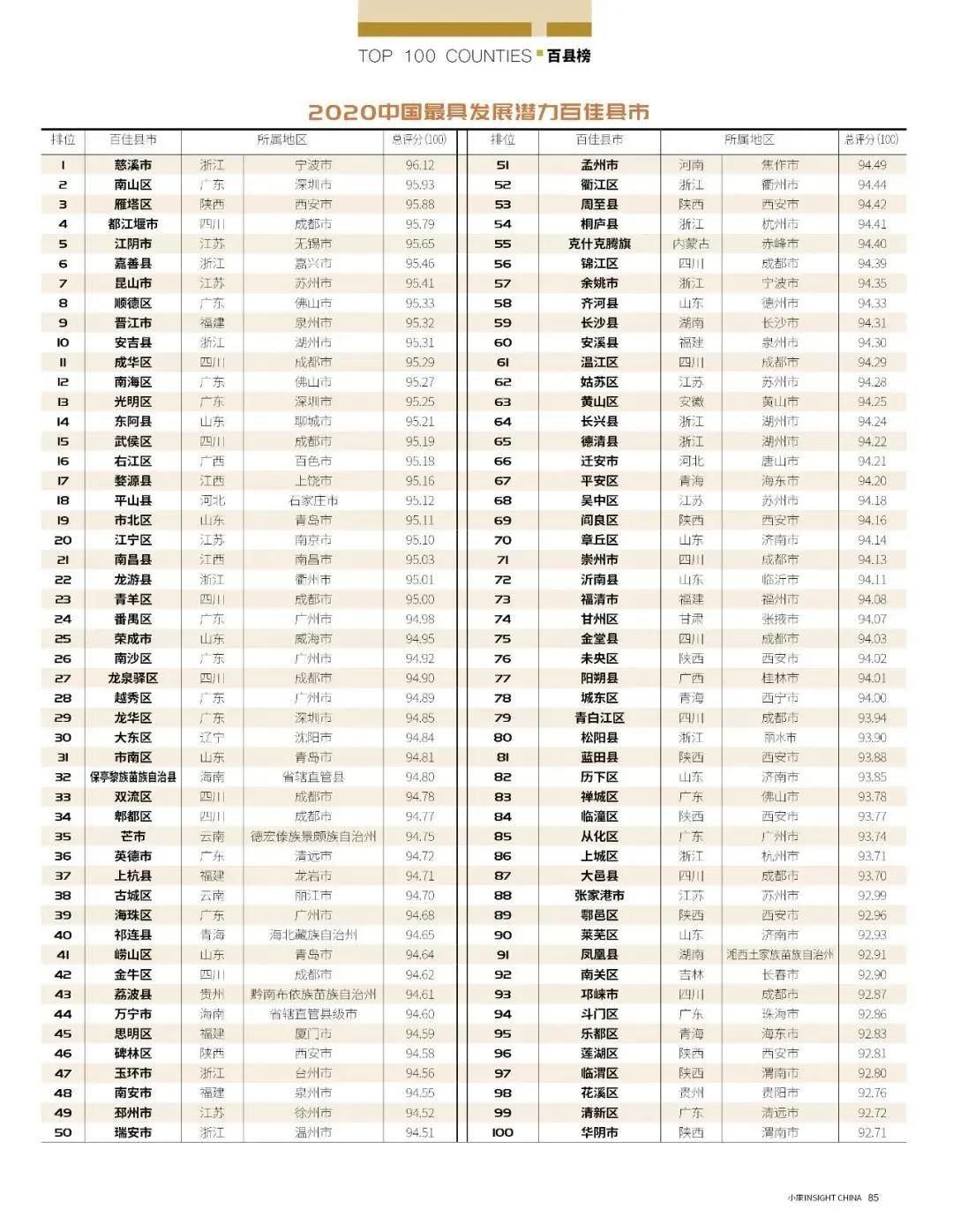 原標(biāo)題:2020中國最具發(fā)展?jié)摿Π偌芽h市發(fā)布南山全國第二,光明及龍華也上榜
