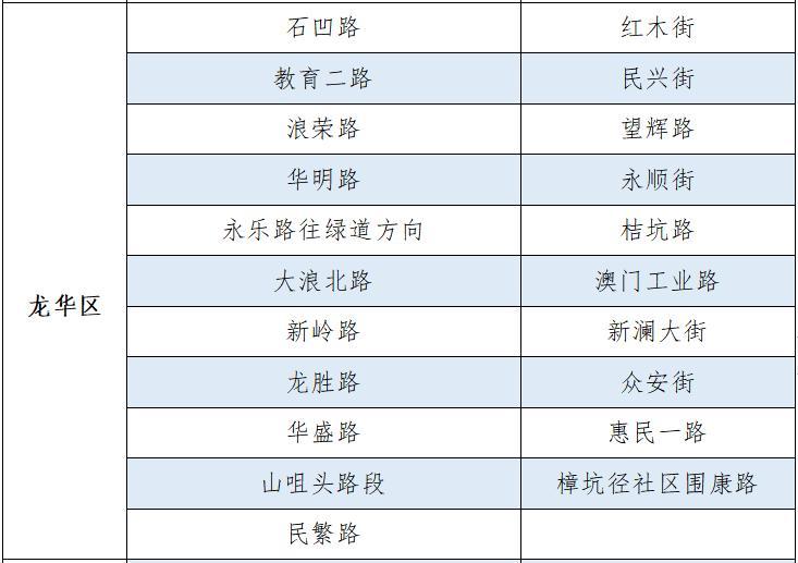 此外,根據(jù)市民反映的信息,深圳交警進(jìn)行實(shí)地走訪、勘查,決定再增設(shè)20條路段作為疫情期間臨時(shí)停車區(qū)。截至2020年3月3日,深圳交警共在全市171條路段做為疫情期間道路臨時(shí)停車區(qū),具體設(shè)置路段如下: