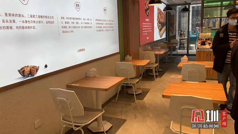 在第二家小貝,記者發(fā)現(xiàn)他們在門口和桌面都會貼上讓顧客佩戴口罩和測量體溫的溫馨提醒,并且鼓勵顧客盡量打包,減少堂食。小貝家的桌椅擺放也是一人一桌,并且座位朝向同一個方向,保持一定的安全距離。目前,他們每天有200多單點餐,基本恢復到疫情之前50%的水平。