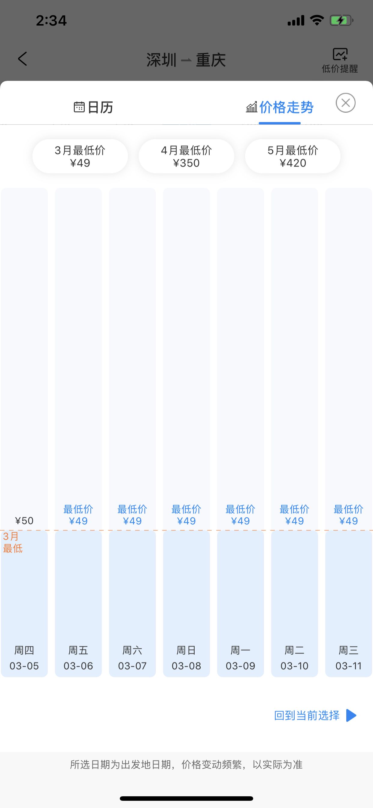 3月5日,記者在飛豬、攜程等第三方機(jī)票預(yù)訂平臺(tái)看到,近日從深圳飛往重慶、成都等地的多條航線,兩位數(shù)的“白菜價(jià)”機(jī)票比比皆是,如深圳飛重慶機(jī)票本身價(jià)格才49元,低價(jià)一直持續(xù)到3月底。一平臺(tái)客服告訴記者,票價(jià)真實(shí),這是航空公司的定價(jià)。