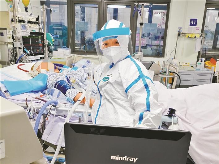 疫情早期,形勢嚴(yán)峻,隨著確診病人一批批收治,重癥病房很快進(jìn)入超負(fù)荷狀態(tài)。“最高峰的時候,我們接診了40多名患者,整個ICU病房都住滿了。重癥、危重癥患者有個特點,就是病情變化特別快,一兩個小時病患的情況就差很遠(yuǎn),這就要求我們必須時刻嚴(yán)密監(jiān)測。因此,每次在班上,我都處于高度緊張的狀態(tài),不停地要去觀察分析各種數(shù)據(jù),要及時對患者治療進(jìn)行調(diào)整,加上穿著厚厚的防護(hù)服,處于缺氧狀態(tài),有時候確實感覺到蠻累的。”而這樣超速運轉(zhuǎn)的值班,一直持續(xù)了一個多月。