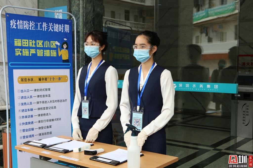 把好安全關(guān)。水務(wù)集團工作人員正對出入萬德大廈的人進行登記和體溫檢測。
