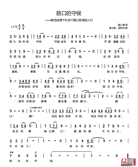 近日,龍崗區(qū)文化廣電旅游體育局職工夏士康、梁玲玲聯(lián)合北京自由音樂人劉珂銘創(chuàng)作的歌曲《路口的守候》正式推出?!奥房冢厥獾氖睾?,可能會(huì)有些唐突,可那肆虐過的風(fēng)雨知道,我從未有過退縮……”該歌曲以抗疫一線實(shí)錄為背景,深情表達(dá)了對(duì)以“路口戰(zhàn)士”為代表的抗疫戰(zhàn)士們的敬愛之情,及眾志成城、抗疫必勝的堅(jiān)定信念。