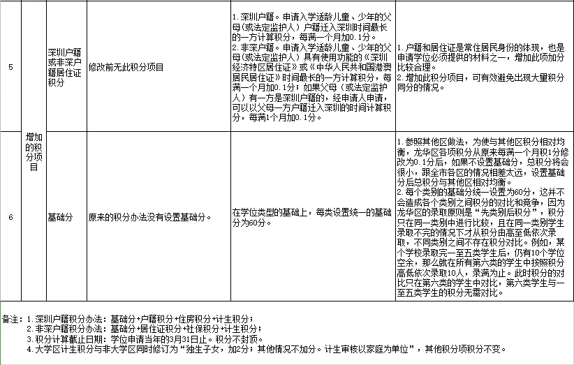 劃重點:政策內(nèi)或全面二孩擬不再加分,獨生子女加2分;深圳戶籍自購商品房產(chǎn)擬改為以房產(chǎn)購買日期計算積分;非深戶籍擬按照養(yǎng)老保險和醫(yī)療保險兩種險種同時繳納的時間計算積分;新增深圳戶籍或非深戶籍居住證積分;新增基礎(chǔ)分60分。