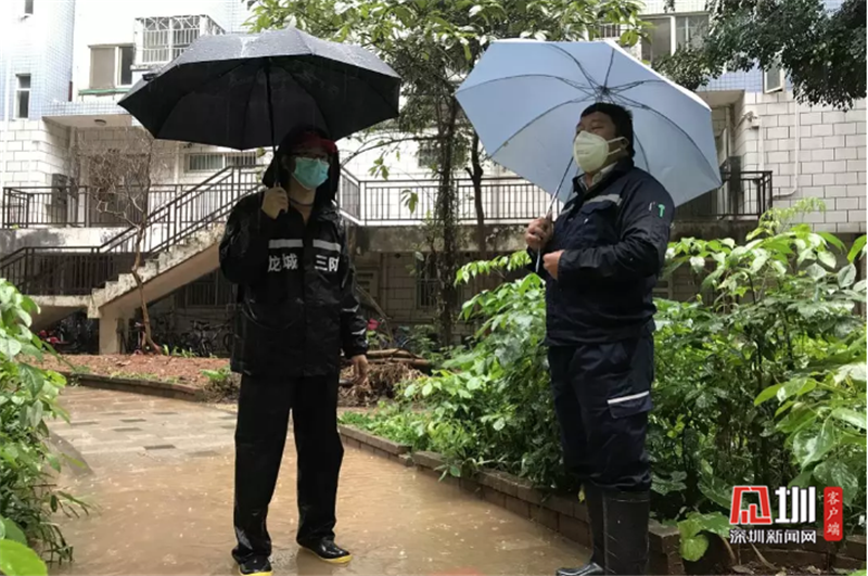 為打贏疫情阻擊戰(zhàn),愉園社區(qū)第一時間聯(lián)合愉園社康中心、新城派出所組建“三位一體”疫情聯(lián)防聯(lián)控工作組。2月13日,暴雨如注,陳科峰一大早剛剛帶著社區(qū)“三位一體”防控小組對一戶居家隔離人員完成核酸檢測。突然又想到和興花園小區(qū)老舊化糞池承載能力有限,今天下暴雨了更容易導致糞水溢出的危險,也不利于疫情防控。于是他馬上冒著大雨趕到現(xiàn)場,和物業(yè)人員進行溝通。“現(xiàn)在一下雨又能聞到刺鼻味道,必須找來抽水泵及時抽走!”站在一片積水中,陳科峰要求物業(yè)人員一定要做好接下來幾天暴雨來臨的準備。他再三強調(diào),疫情之下,不能對居民生活造成不便。